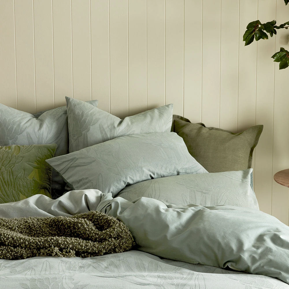 Bring a touch of the natural world indoors with the Ariana quilt cover set. Crafted from an elegant jacquard fabric, it features a stunning sprawling waratah design that will subtly add texture and movement to your space.