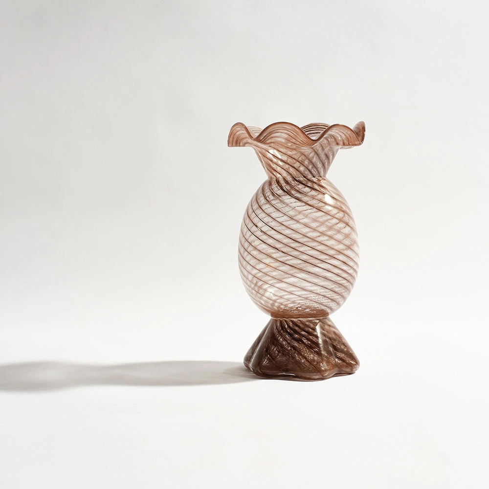 A delightful nod to vintage glamour with a contemporary twist, the Bon Bon Vase evokes the opulence of 1920s French palaces. This charming design is available in two stunning colour options: a soft, pretty pink or a rich chocolate that perfectly complements a neutral palette. Whether styled with flowers or as a stand-alone piece, the Bon Bon Vase adds a touch of old-world charm to any setting.
