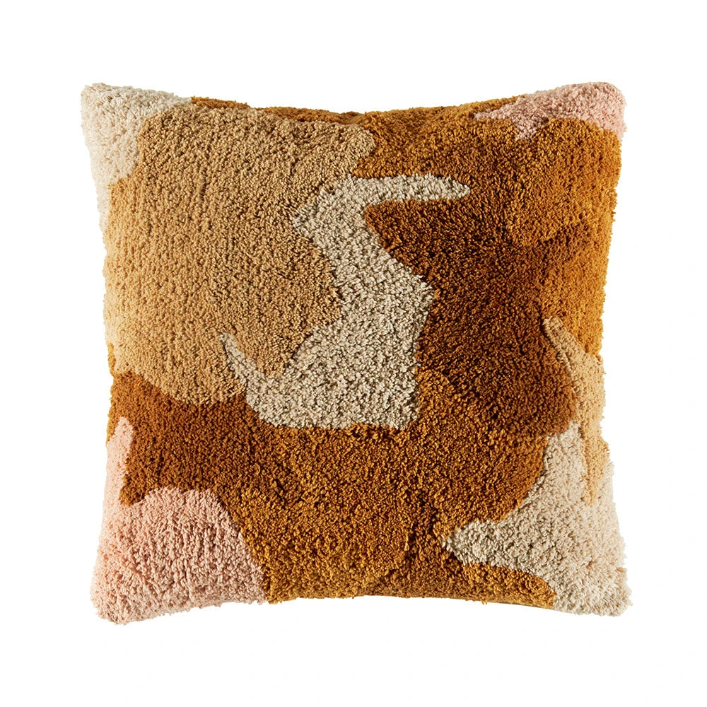 Texture meets artistic statement in the Carta cushion. Subtly drawing inspiration from camouflage patterns, it’s constructed from soft cotton tufting to create a cosy yet dramatic living room accent piece. Style yours in any space in designed for comfort.