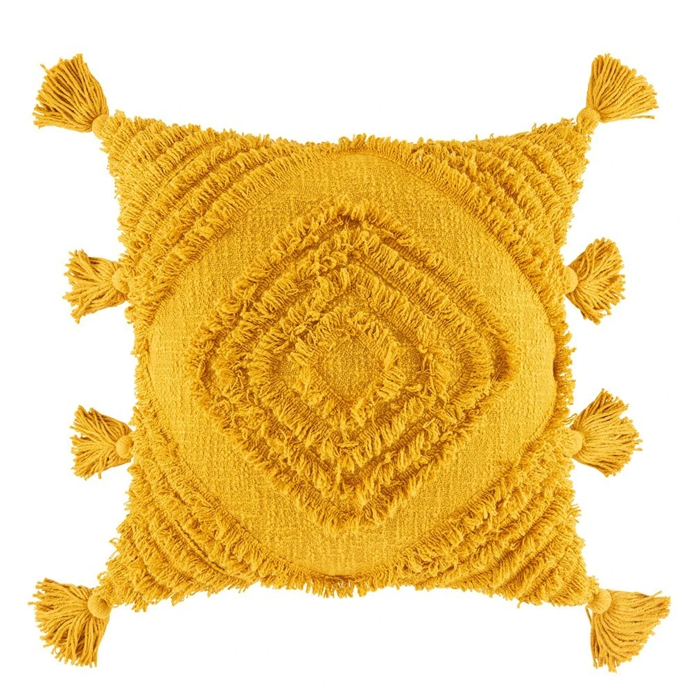 Channel a contemporary tribal aesthetic in your interior with the Daffie cushion cover. Anchored by a tufted diamond pattern, the soft cotton cushion is edged with playful tassels for a statement finish.