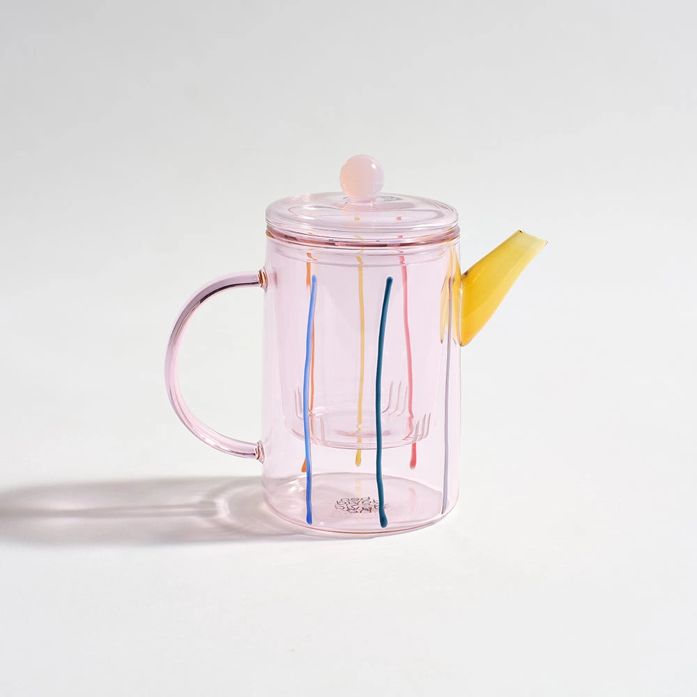 Introducing the Fiesta Collection, where art and functionality converge in a sophisticated celebration of design. Inspired by the brilliance of contemporary art at the MOMA museum in New York, each piece in this collection is a masterpiece in its own right. Crafted from the finest borosilicate glass, the linear hand-laid coloured glass stripes infuse your table with an exquisite vibrancy. Whether you’re enjoying a refreshing drink from the glass tumblers or steeping tea in the teapot with its built-in strainer and matching striped cup and saucer, each sip becomes a refined experience.