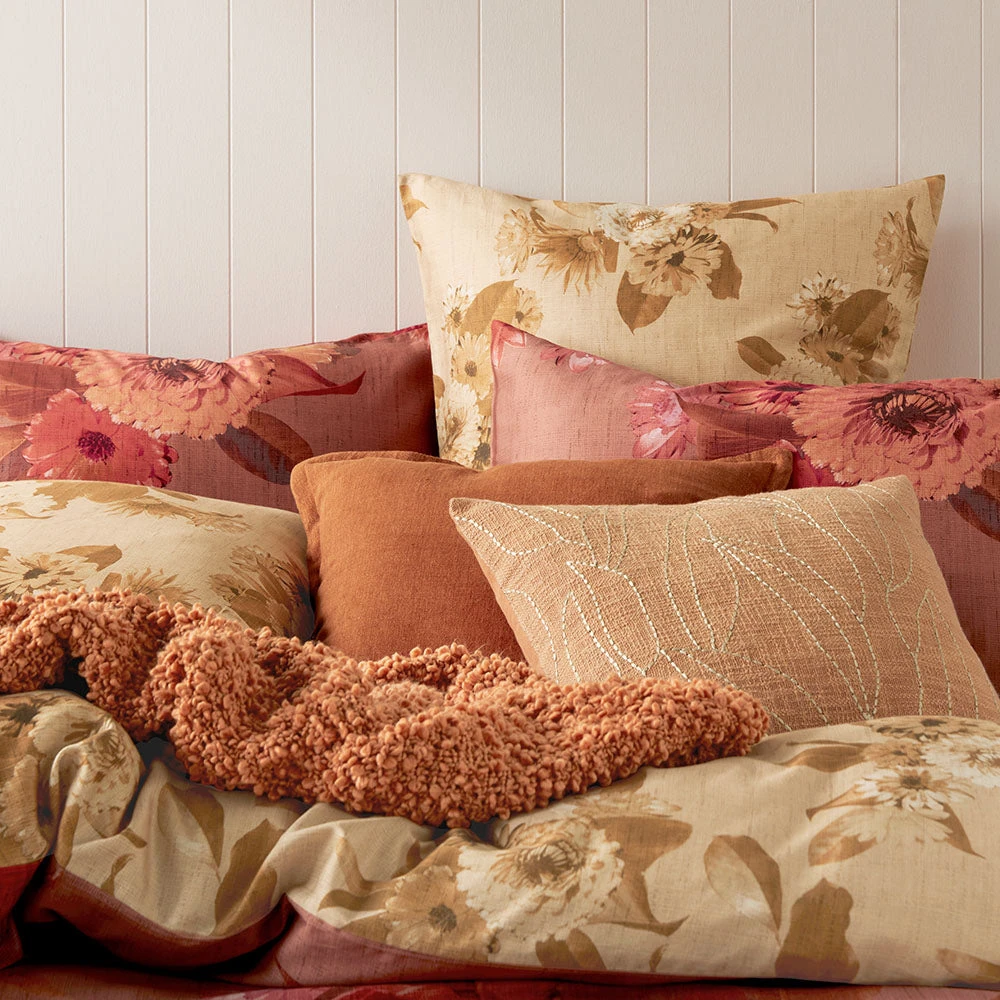Reinvent your living space with the vintage-inspired Fleur European pillowcase. Featuring a print of floral bouquets on a soft textured cotton, its brilliant vintage golden hue is designed to steal the show.