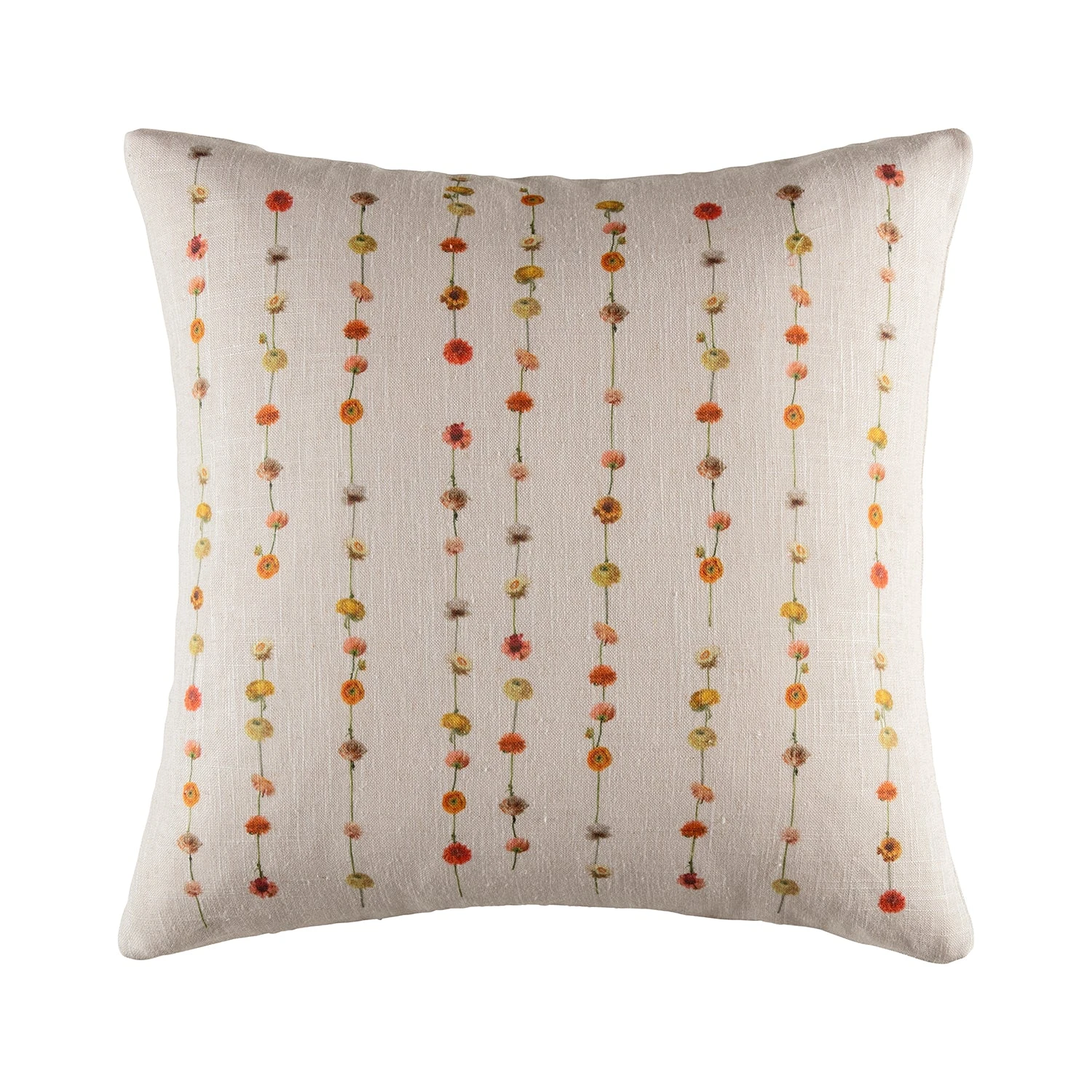 Channel the nostalgic feel of endless summer afternoons spent making daisy chains with the Flora cushion. Its print of foraged flower chains on a textural linen creates a carefree yet simultaneously sophisticated statement that will inject life into any interior that has become that little bit too serious.
