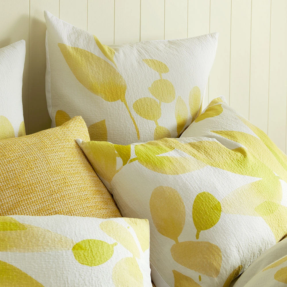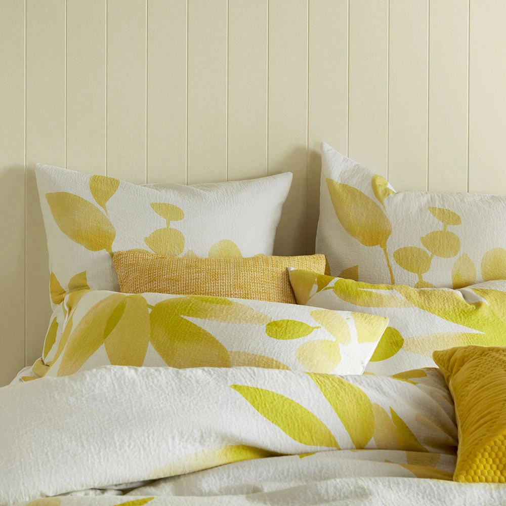 Look to the bright side of life with the Ghost quilt cover set. Reminiscent of a visit to Capri, it is printed on a luxurious cotton jacquard and features a watercolour print of leaf silhouettes in a citrus shade that will remind you to live the very best dolce vita when you wake every morning.