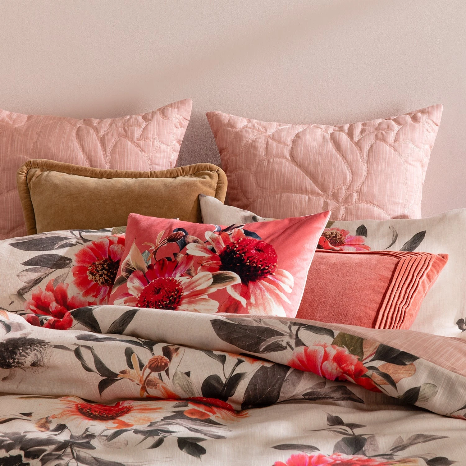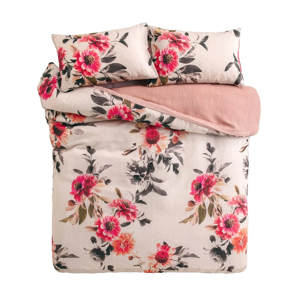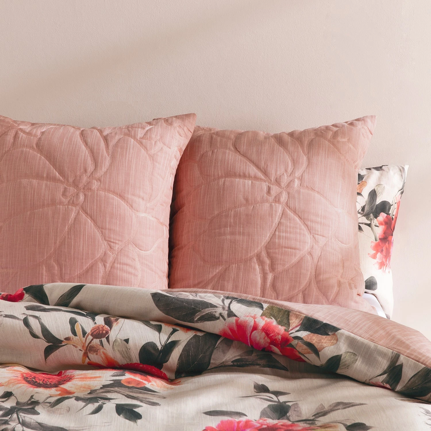 Floral and feminine, the Jude quilt cover set carries the simple elegance of a garden in bloom. Its print of bright flowers is balanced with a charming blush reverse. It is crafted from a soft and breathable cotton fabric for a smooth nights’ sleep.