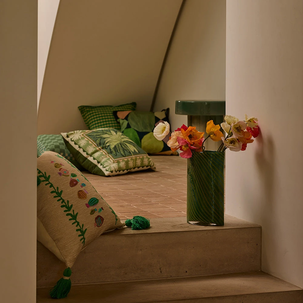 Escape to a tropical paradise with the Luana Cushion—a lush fusion of nature-inspired design and contemporary elegance. Crafted from textured cotton slub, its vibrant green and neutral hues bring a refreshing, organic feel to any space. The bold tropical print evokes a sense of effortless island living, while the cotton velvet reverse adds a luxe, tactile contrast. Whether layered with neutrals or paired with bold accents, Luana is the perfect statement piece for a modern, nature-infused home.