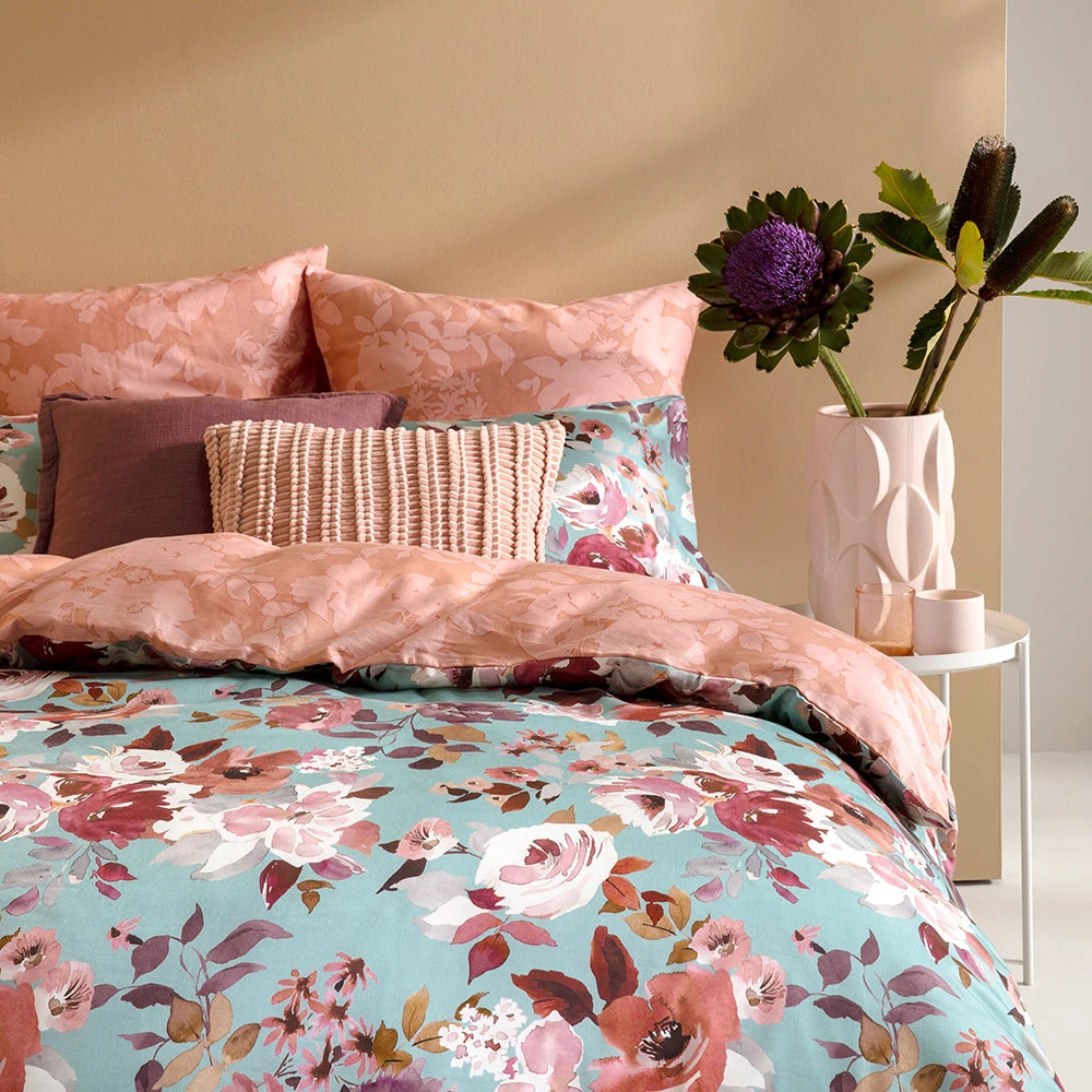 Channel timeless French chic with the luxurious Marais quilt cover set. Crafted from the softest pastel toned cotton sateen, it features a vibrant print of floral bouquets. To complete the dreamy Versailles experience, the reverse spares no detail with a silhouette of the floral design in a gorgeous two toned print.