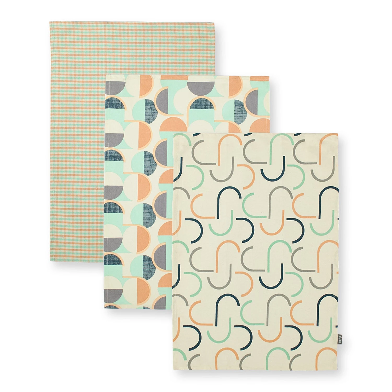 - Includes 3 x tea towels, one printed for a pop of fun and one in a block colour
