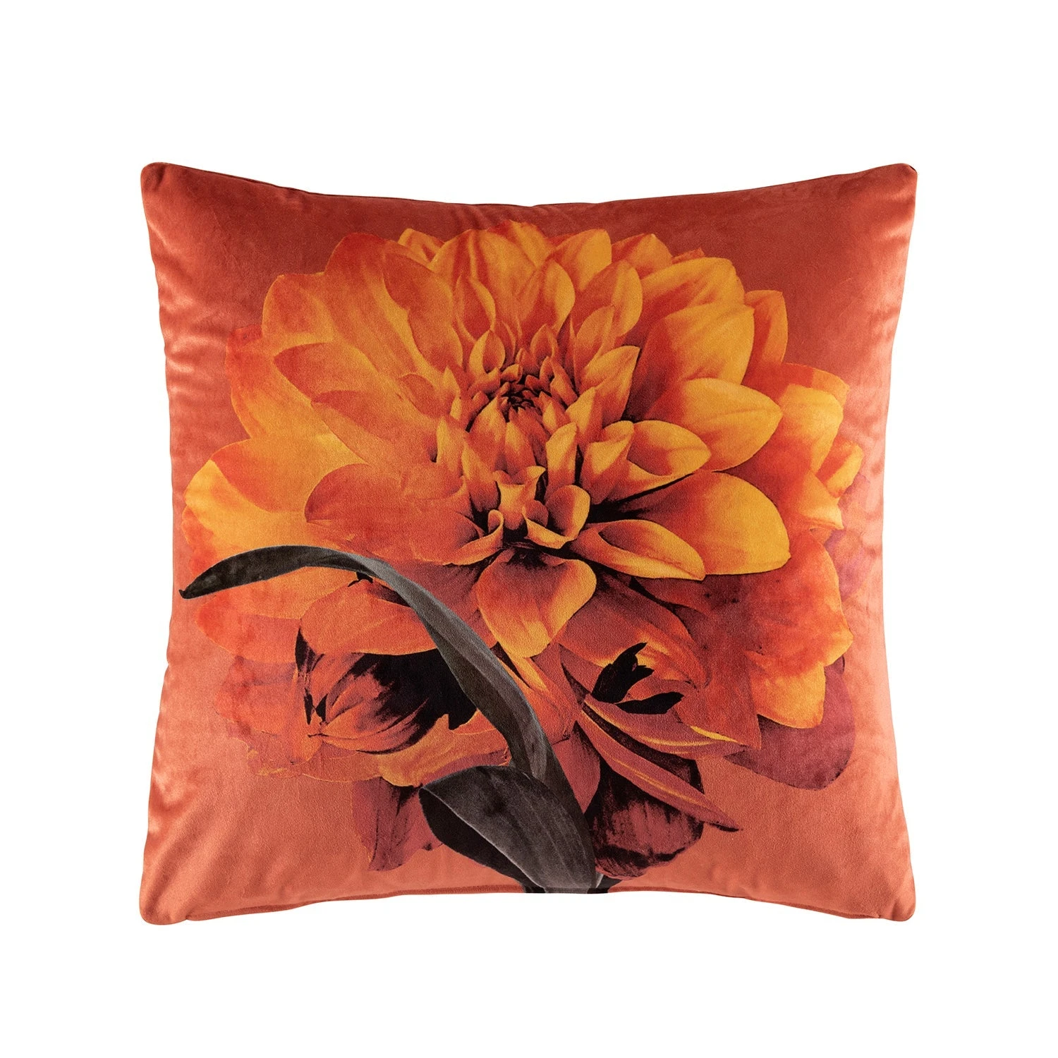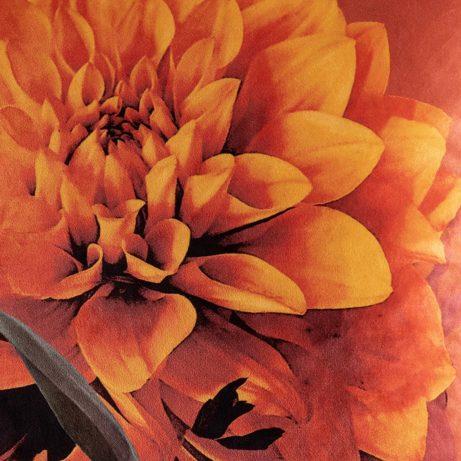 Dramatic and bright, the Melody cushion cover was born to steal the show. It features a luscious flower in bloom printed on a majestic velvet. Its striking shades of orange will immediately guide the eye to your bed or lounge.