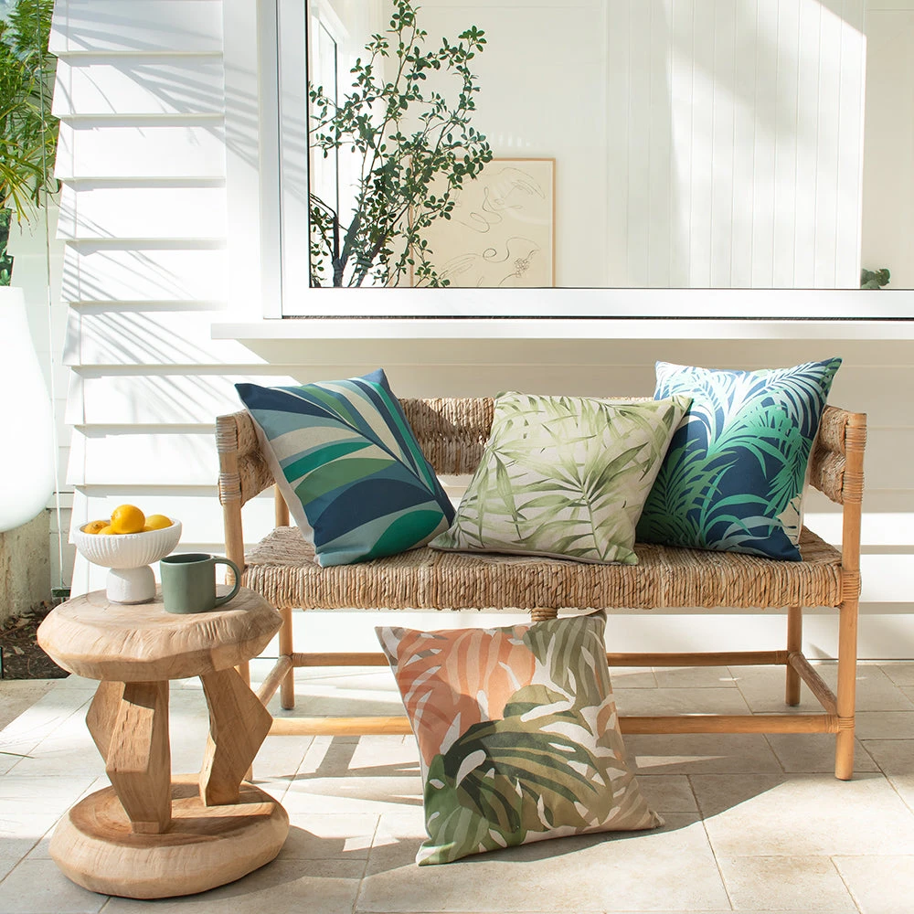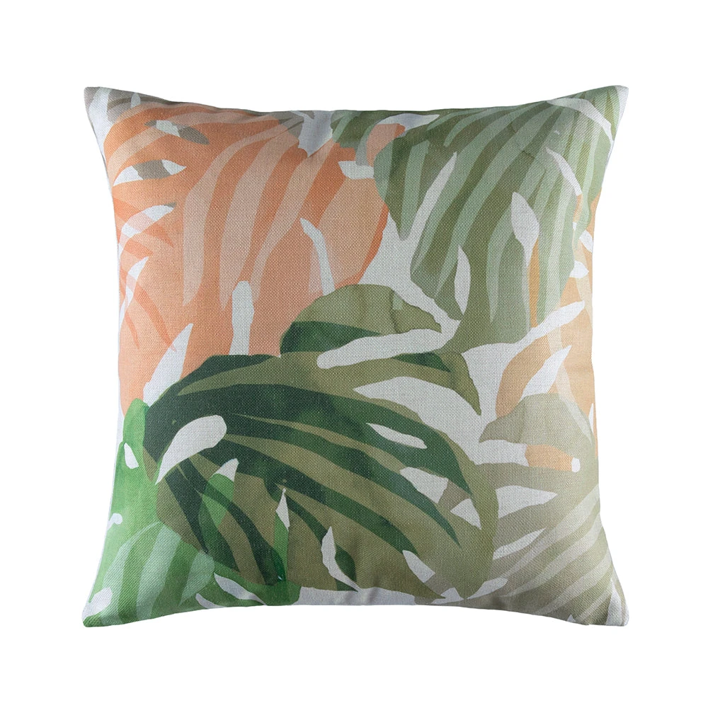Give your outdoor setting a bright, fun and tropical feel with the Monstera outdoor cushion. Featuring a print of Monstera leaves in lush greens and coral on a relaxed natural base, it is crafted from our weather-resistant outdoor fabric for durability.