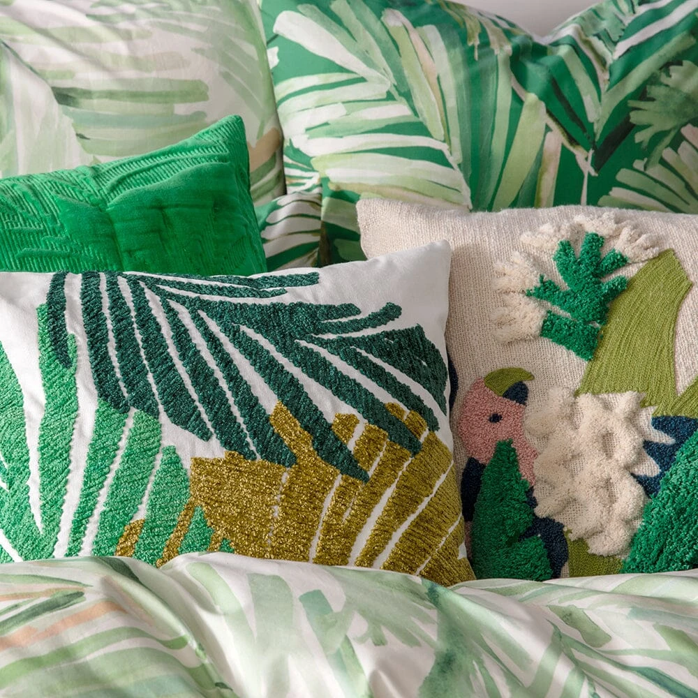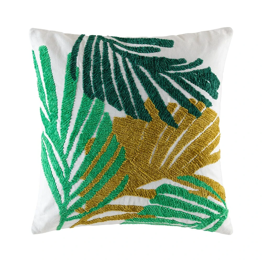 Give your interior a taste of the tropics with the Oliana cushion. On a cream cotton canvas, palm leaves are brought to life with beautifully textured boucle embroidery.