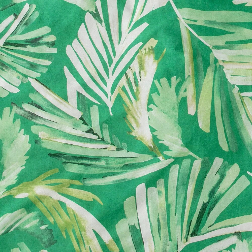 Make your bedroom a holiday destination in its own right with the Oliana quilt cover set. Crafted from luxurious cotton in striking greens featuring a print of tropical leaves painted in sweeping brushstrokes. It  is fully reversible with a muted version of the front print on the reverse.