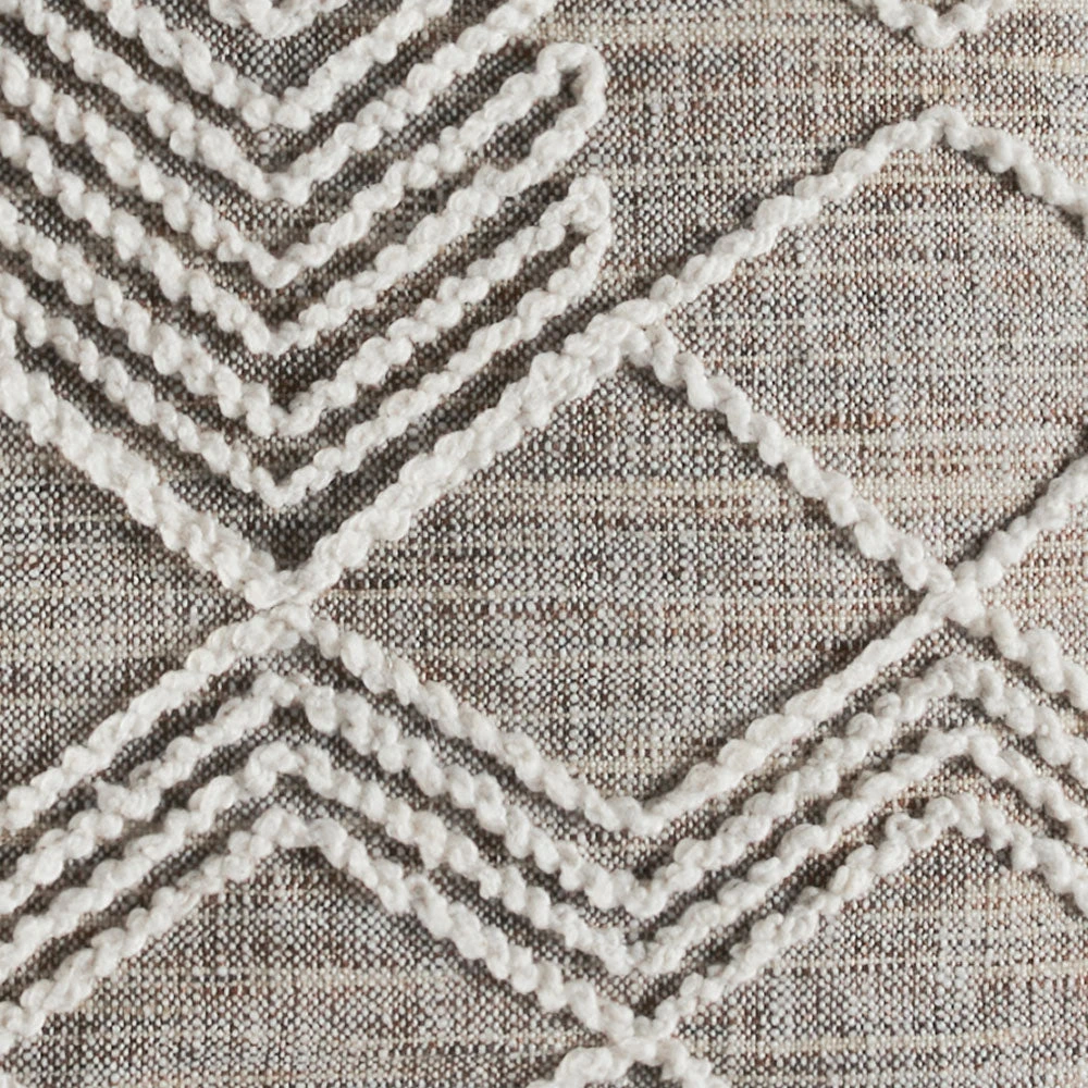 Elevate your cushion arrangement with the Quest cushion. Designed to be the finishing accent piece, its woven base is decorated with tribal boucle detail for a relaxed bohemian aesthetic. It is edged with playful fringing for added texture