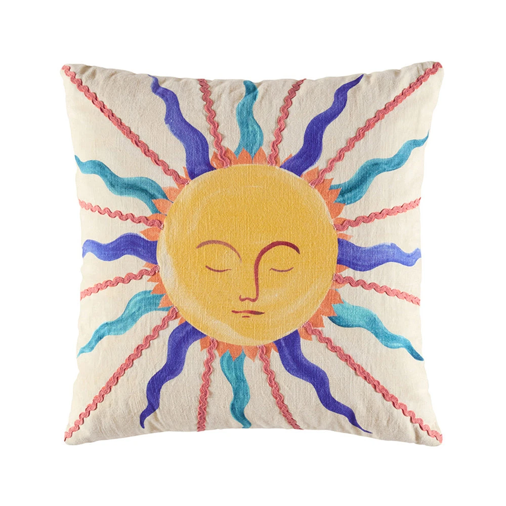 Radiate warmth and personality with the Shine Cushion, a playful fusion of funky design and artisanal craftsmanship. Featuring a bold, sun-inspired printed motif enhanced with intricate ric rac embroidery, this cushion brings a vibrant, free-spirited energy to any space. Crafted from textured cotton slub with a matching reverse, it offers both visual depth and a natural, relaxed feel. Perfect for those who love statement pieces, Shine is a bright and joyful addition to any contemporary home.