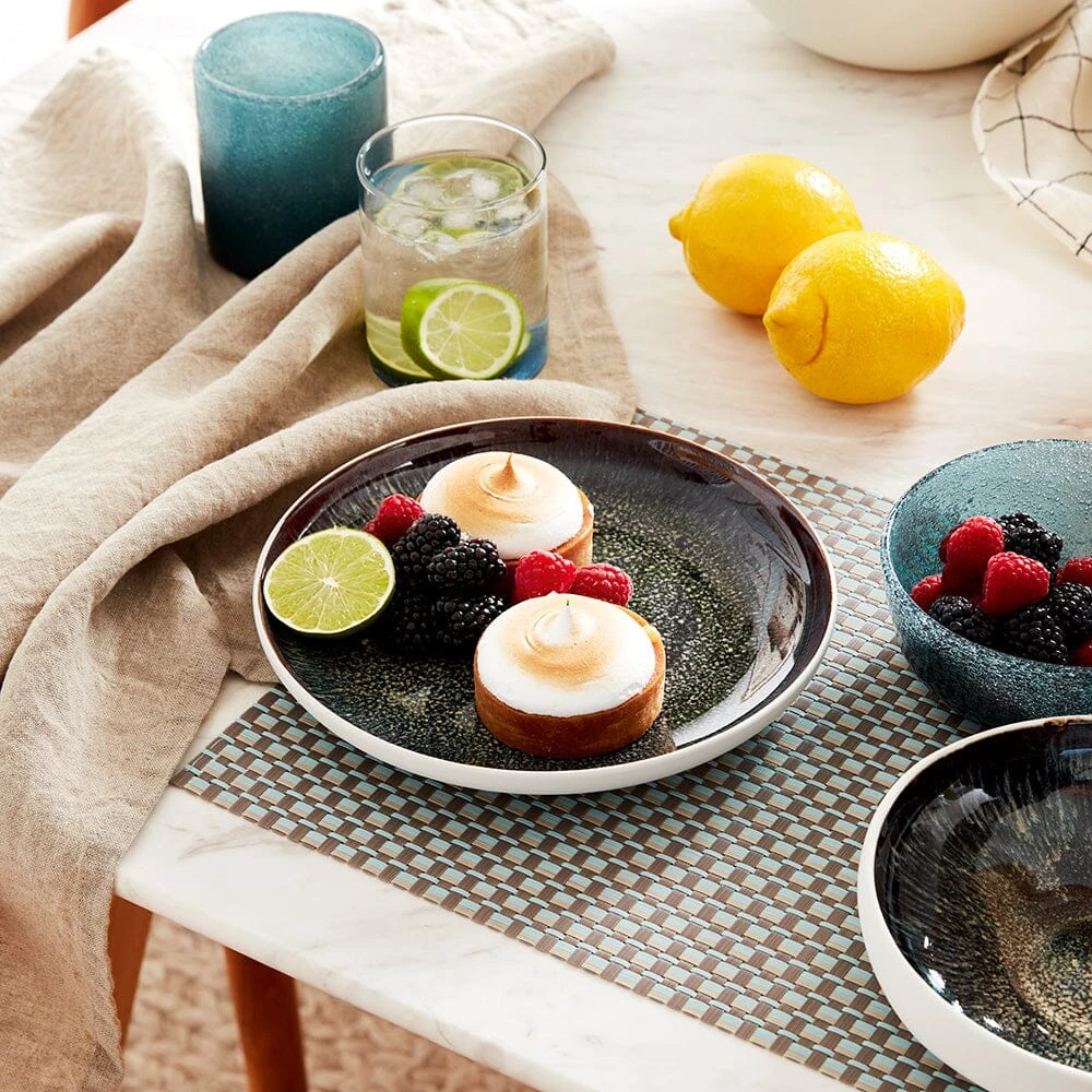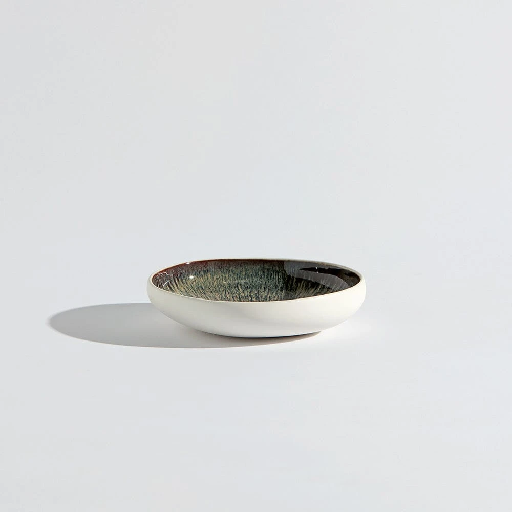 Sculptural and sleek, the Sorrento dinnerware collection uses high contrast to create a contemporary aesthetic. With an exterior sculpted from a simple white clay, the interior steals the show with midnight toned glazing. As each piece in the collection is crafted by hand, there are beautiful natural variations in the glazing.